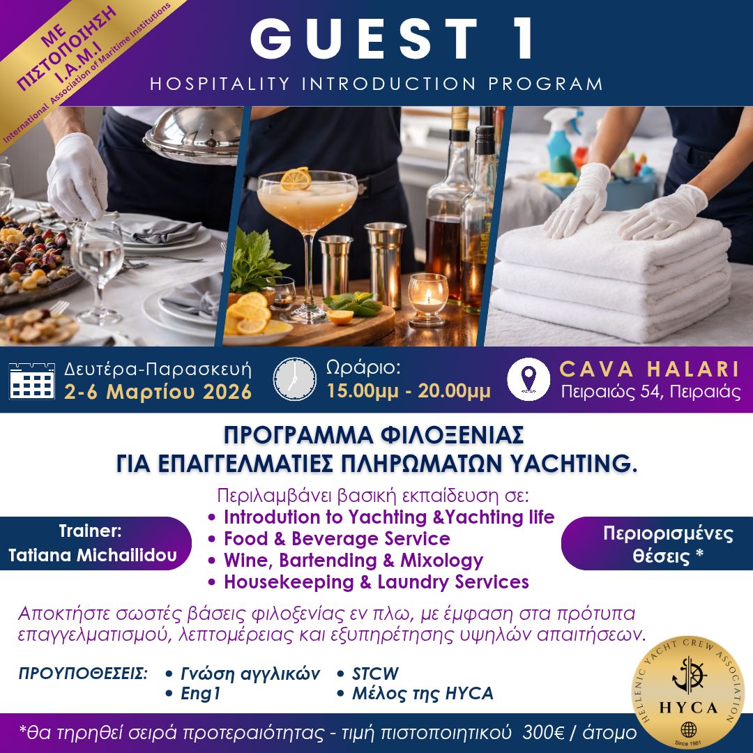 Σας ενημερώνουμε για τις αυξημένες αποδοχές του έτους 2026, με βάση τη Συλλογική Σύμβαση Εργασίας Πληρωμάτων Επαγγελματικών Τουριστικών Σκαφών Ν.4926/2022 για τα έτη 2024-2025-2026, που έχει συνάψει η HYCA με την εργοδοτική οργάνωση «Ένωση Πλοιοκτητών Ελληνικών Σκαφών Τουρισμού» (ΕΠΕΣΤ) και η οποία έχει ήδη κυρωθεί από τον Κο Υπουργό Ναυτιλίας και Νησιωτικής Πολιτικής (ΦΕΚ 3359 Β’/01.07.2025) δεσμεύοντας ολόκληρο τον Κλάδο των Πληρωμάτων Επαγγελματικών Τουριστικών Σκαφών μέχρι τις 31.12.2026.