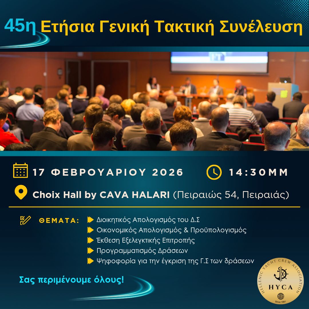 Σχετικά με την Αύξηση αποδοχών για το έτος 2026, με βάση τη Συλλογική Σύμβαση Εργασίας Πληρωμάτων Επαγγελματικών Τουριστικών Σκαφών Ν.4926/2022 ετών 2024-2025-2026, που υπέγραψε η HYCA.